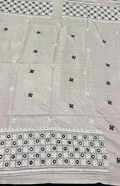 Kutchwork Blouse Piece is Intricately Handembroidered on the Back Neck and Sleeves Portion