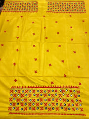 Kutchwork Blouse Piece is Intricately Handembroidered on the Back Neck and Sleeves Portion