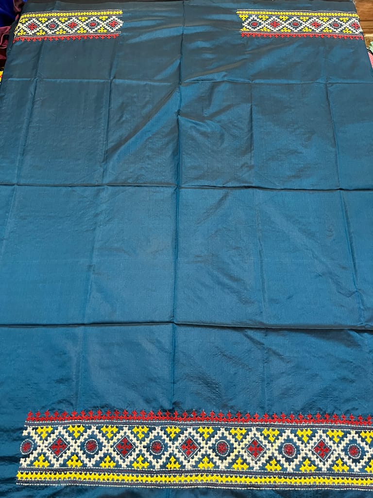 Kutchwork Blouse Piece is Intricately Handembroidered on the Back Neck and Sleeves Portion