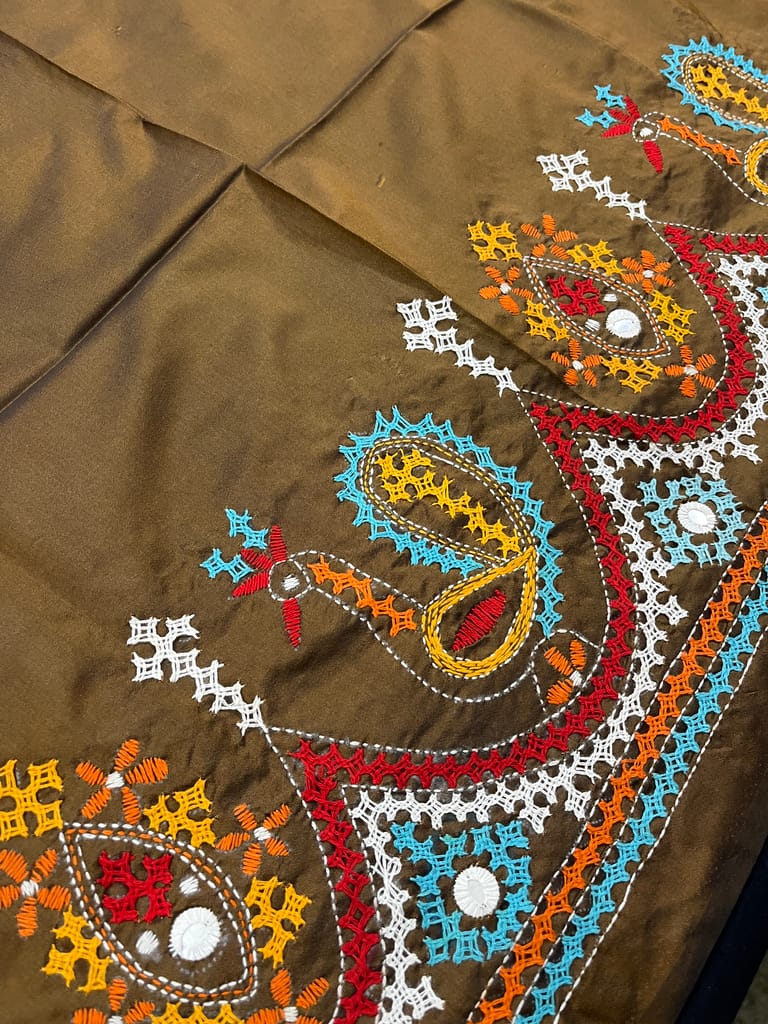 Kutchwork Blouse Piece is Intricately Handembroidered on the Back Neck and Sleeves Portion