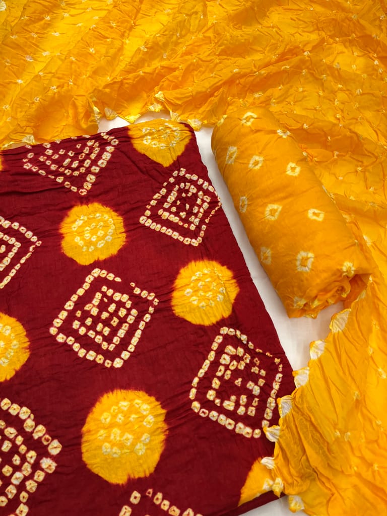 Bottom : Pure Cotton with Bandhani Design, Length : 2.20 Mtrs