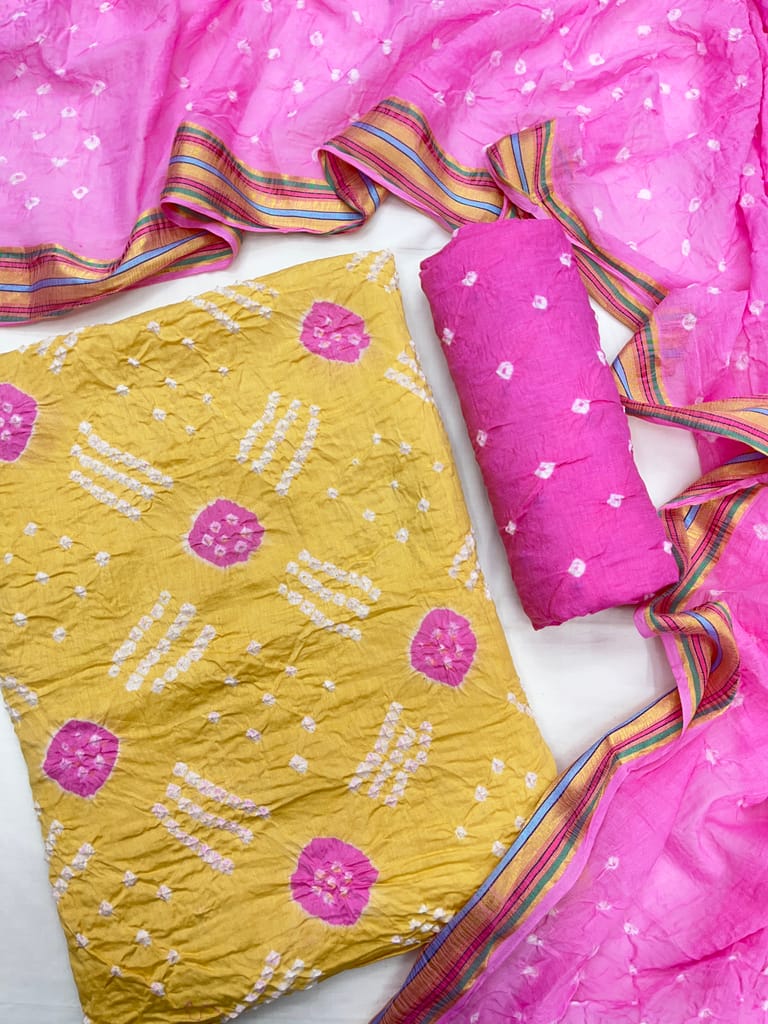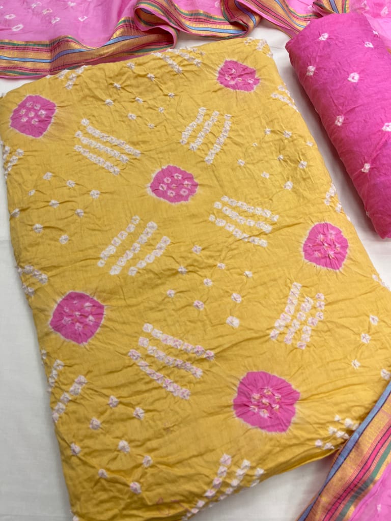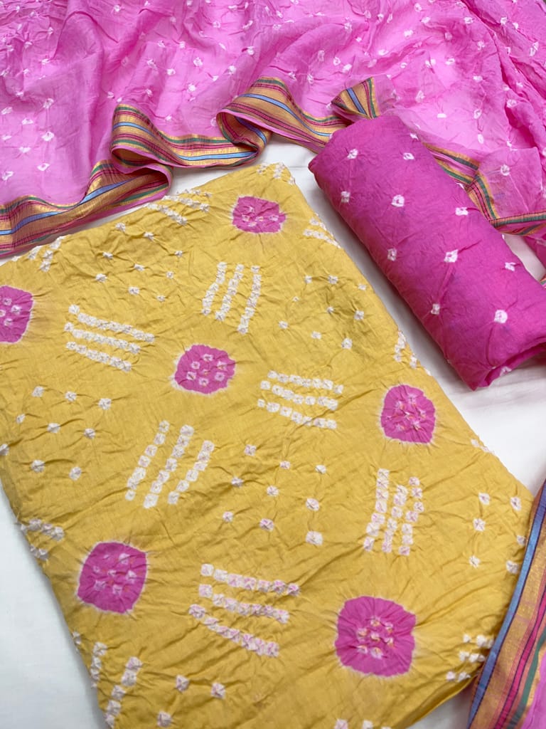 Bottom : Pure Cotton with Bandhani Design, Length : 2.20 Mtrs