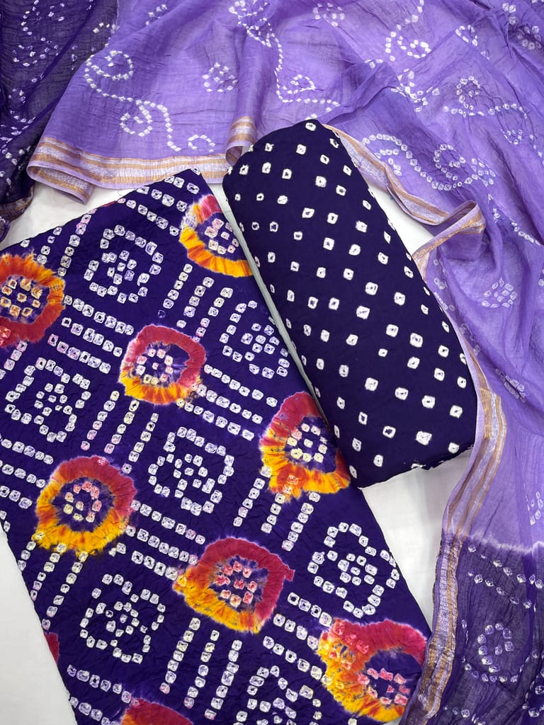 Bottom : Pure Cotton with Bandhani Design, Length : 2.20 Mtrs