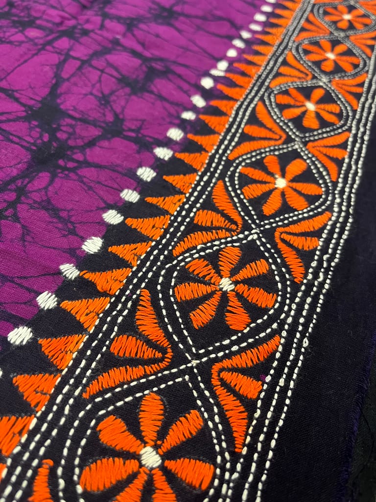 Kanthawork Blouse Piece is Purely Hand-Embroidered on the Back Neck and Sleeves Portion