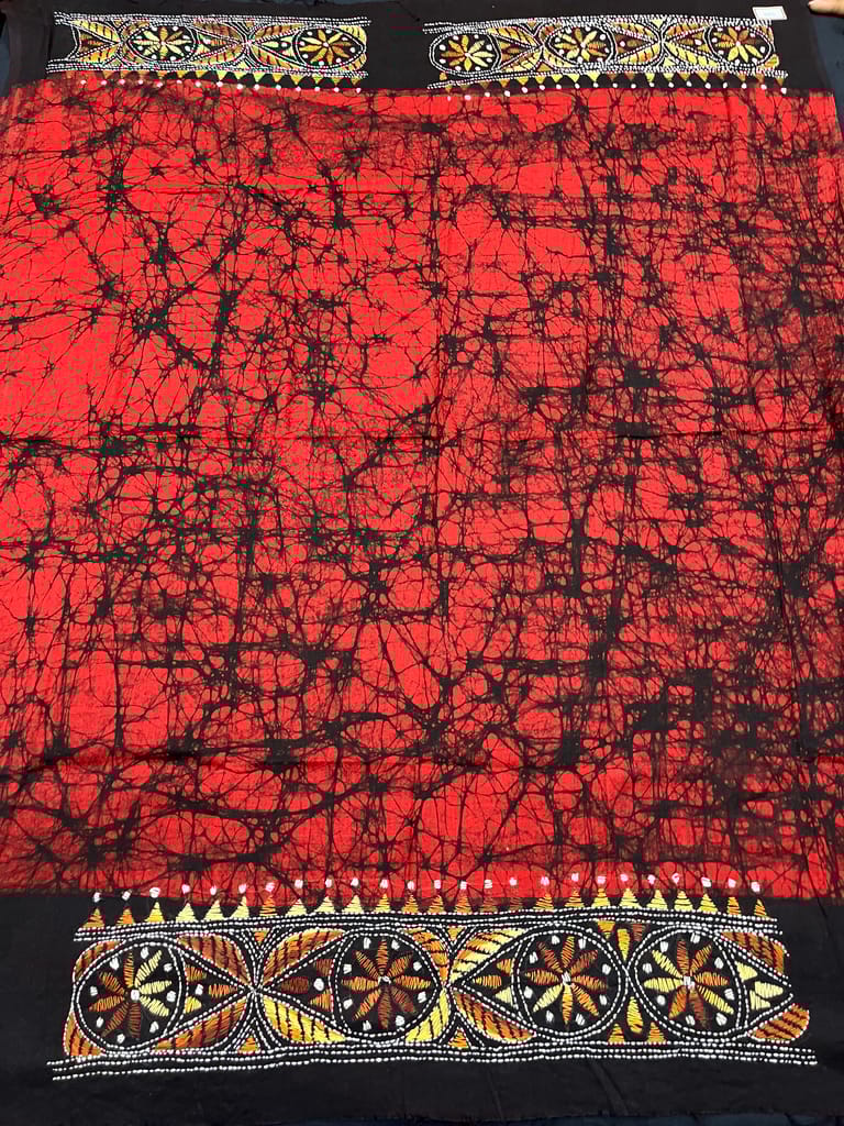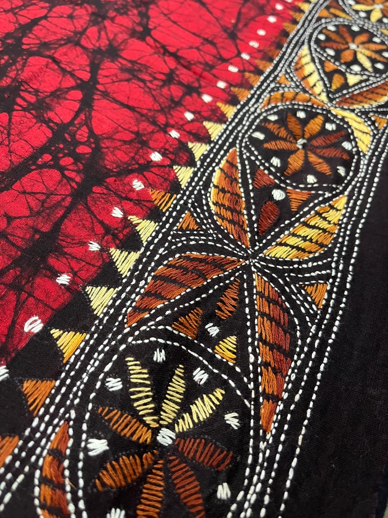 Kanthawork Blouse Piece is Purely Hand-Embroidered on the Back Neck and Sleeves Portion