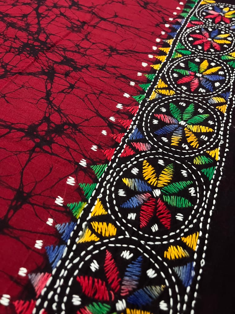 Kanthawork Blouse Piece is Purely Hand-Embroidered on the Back Neck and Sleeves Portion