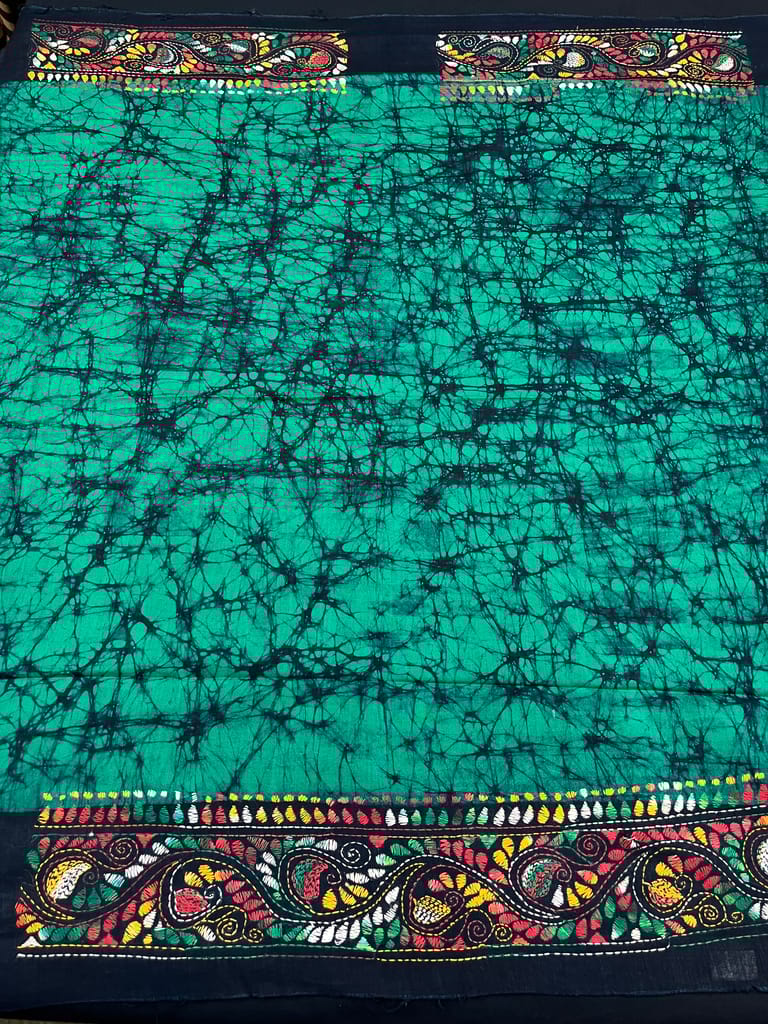 Kanthawork Blouse Piece is Purely Hand-Embroidered on the Back Neck and Sleeves Portion