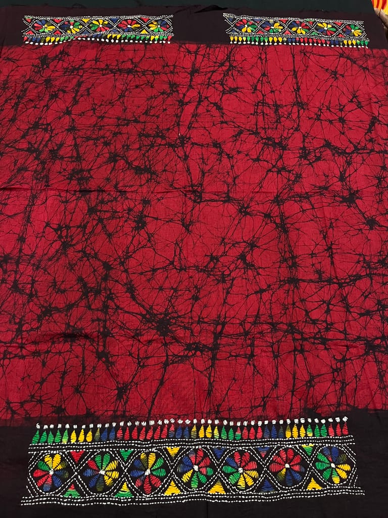Kanthawork Blouse Piece is Purely Hand-Embroidered on the Back Neck and Sleeves Portion