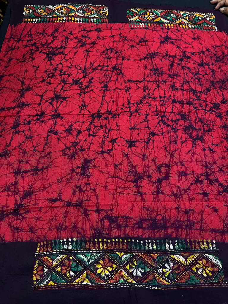 Kanthawork Blouse Piece is Purely Hand-Embroidered on the Back Neck and Sleeves Portion
