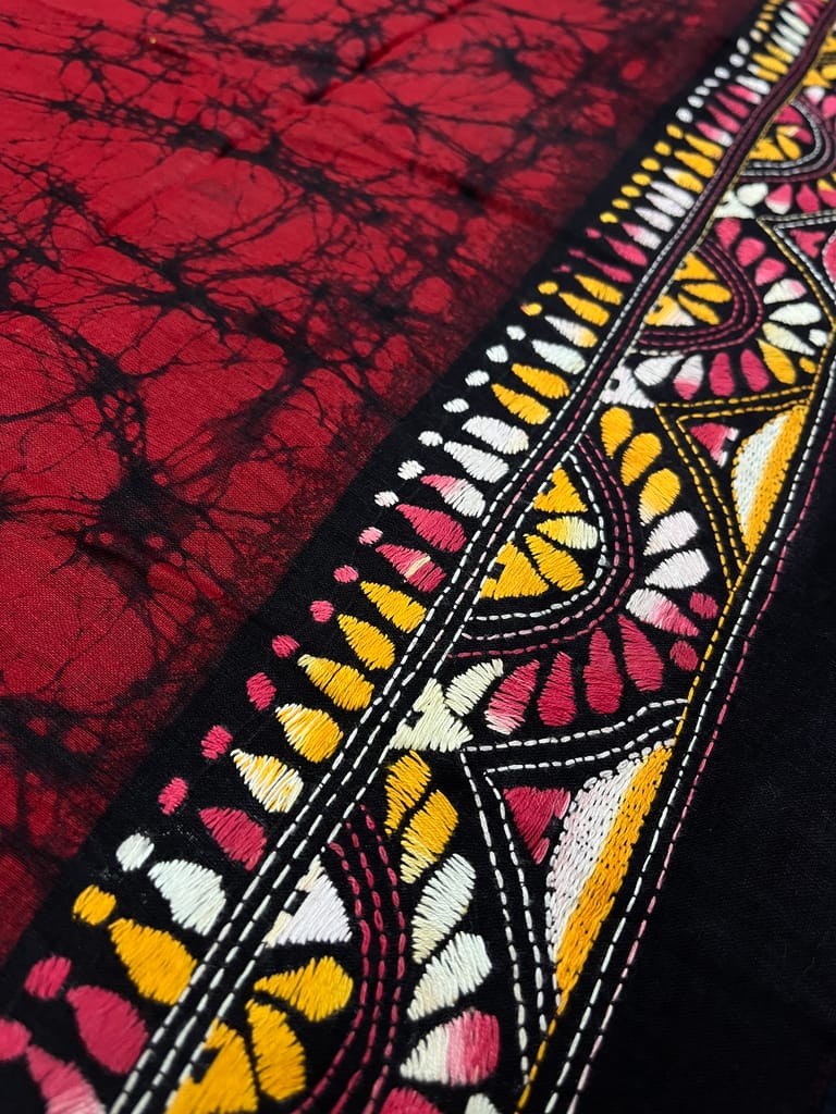 Kanthawork Blouse Piece is Purely Hand-Embroidered on the Back Neck and Sleeves Portion