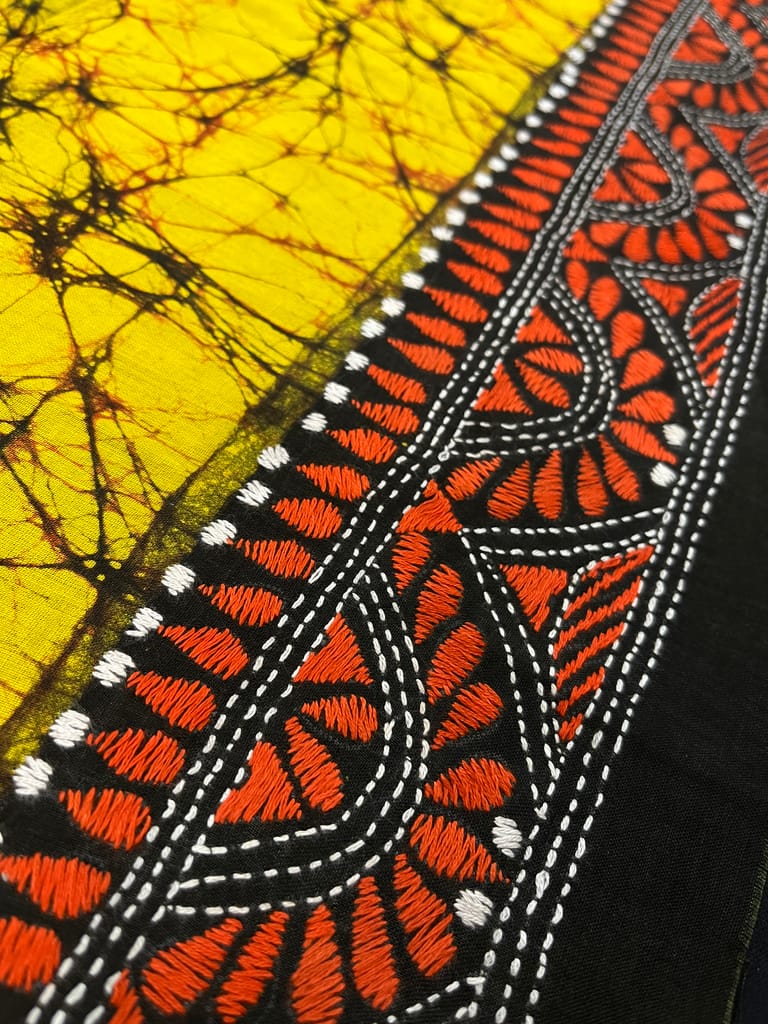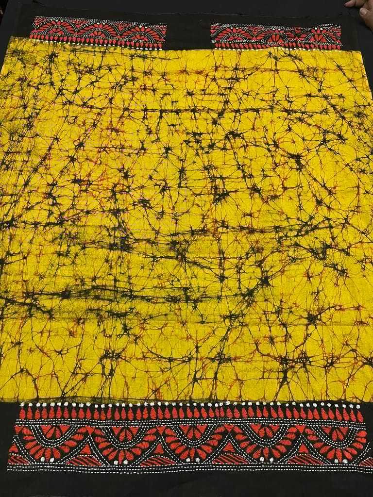 Kanthawork Blouse Piece is Purely Hand-Embroidered on the Back Neck and Sleeves Portion