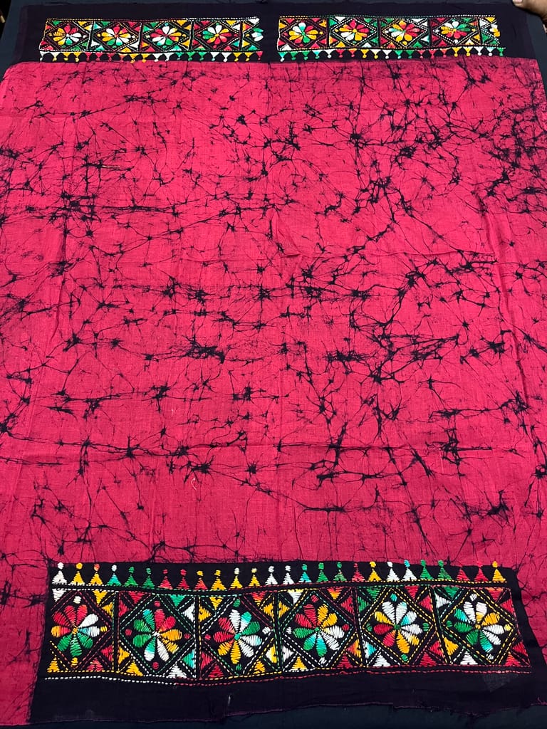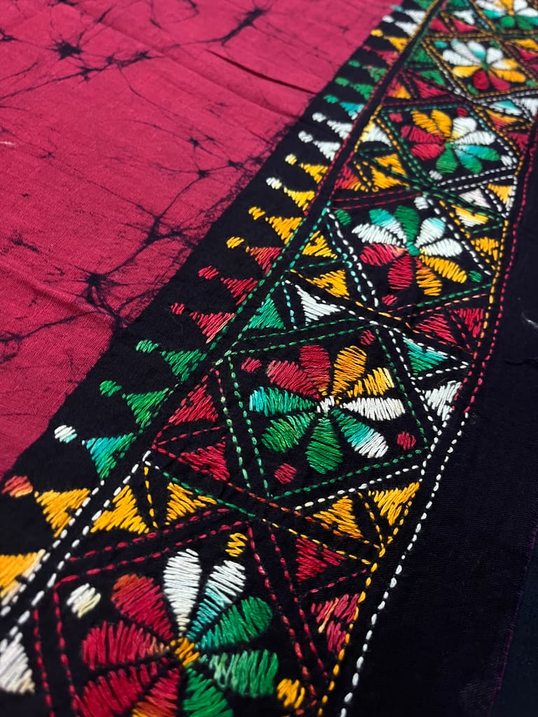 Kanthawork Blouse Piece is Purely Hand-Embroidered on the Back Neck and Sleeves Portion