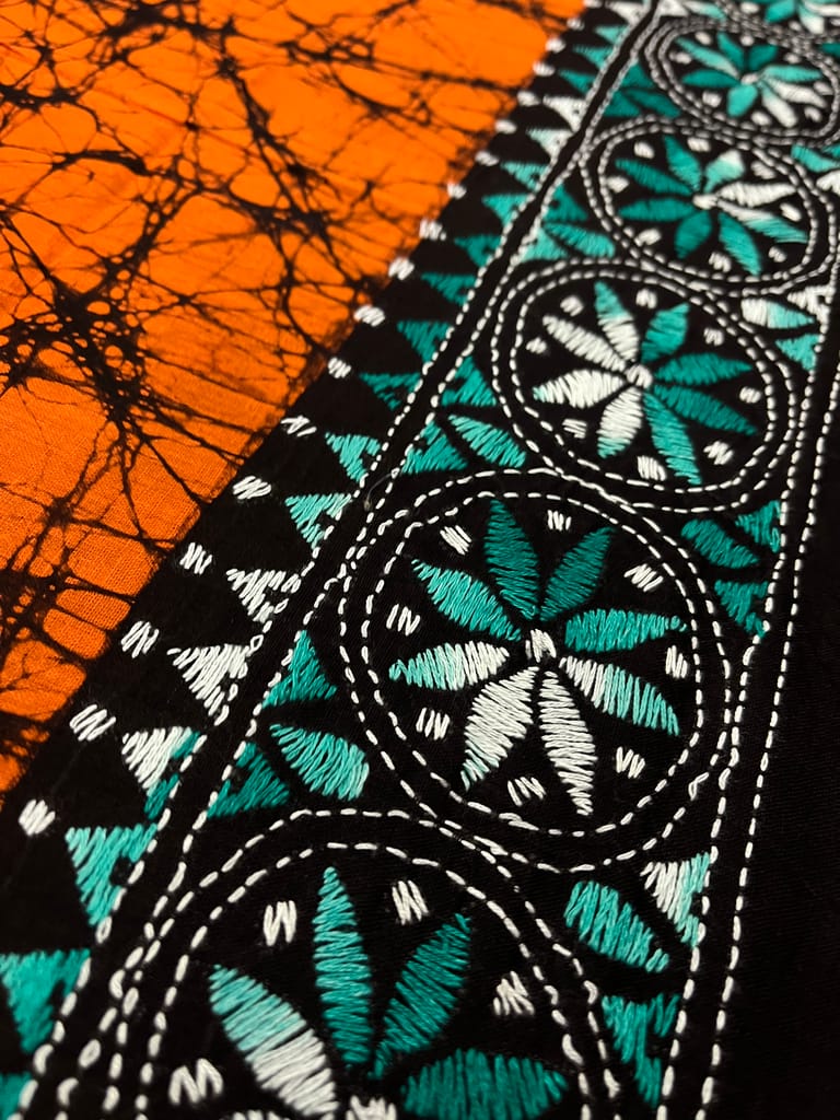 Kanthawork Blouse Piece is Purely Hand-Embroidered on the Back Neck and Sleeves Portion
