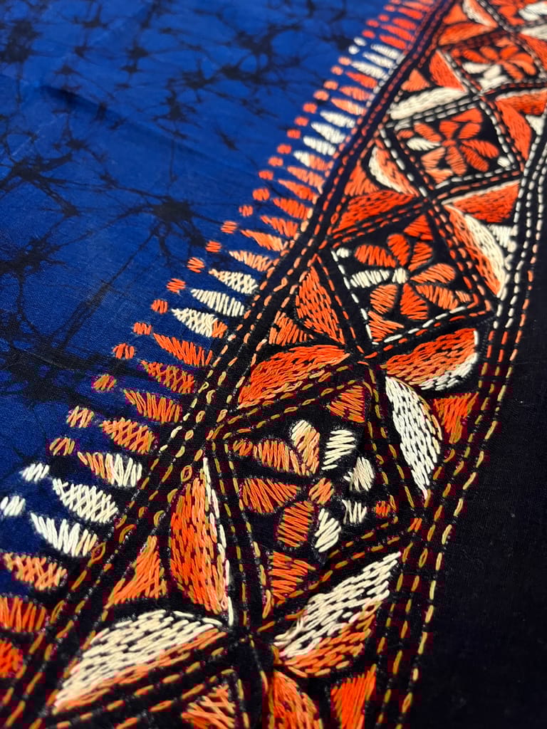 Kanthawork Blouse Piece is Purely Hand-Embroidered on the Back Neck and Sleeves Portion