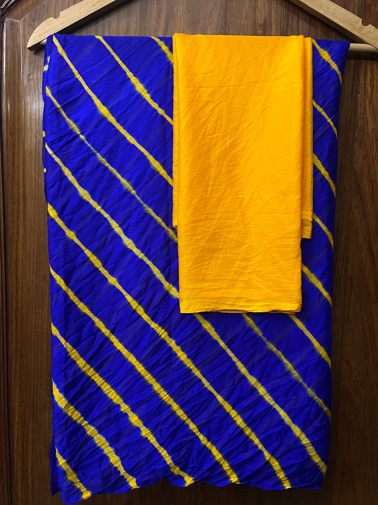 SKU-EGILBONZVLehariya is a Traditional Style of Tie & Dye Practice in India, that results in Brightly Coloured Cloth with Distinctive Patterns. Lehariya gets its name from Word Lehar which means ''Wave'' because the dyeing technique is used to produce complex Wave Designs, popularly called the Lehariya!