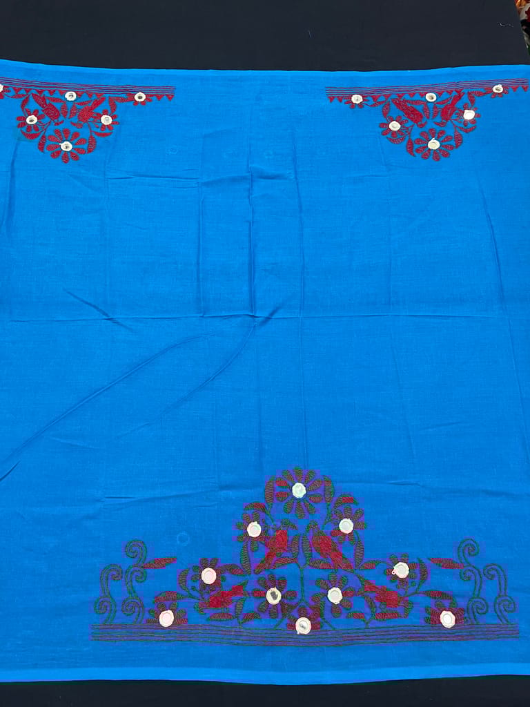 Kanthawork Blouse Piece is Purely Hand-Embroidered on the Back Neck and Sleeves Portion