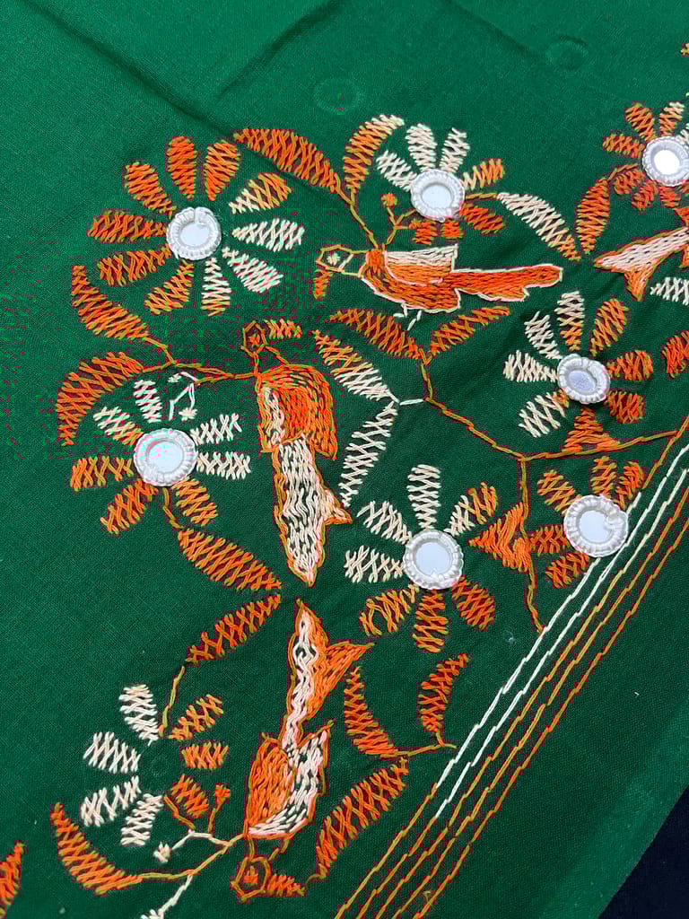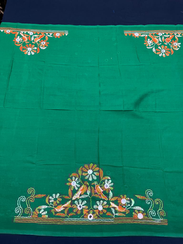 Kanthawork Blouse Piece is Purely Hand-Embroidered on the Back Neck and Sleeves Portion
