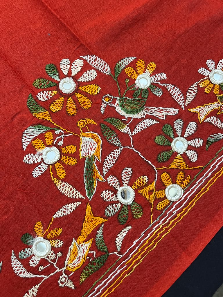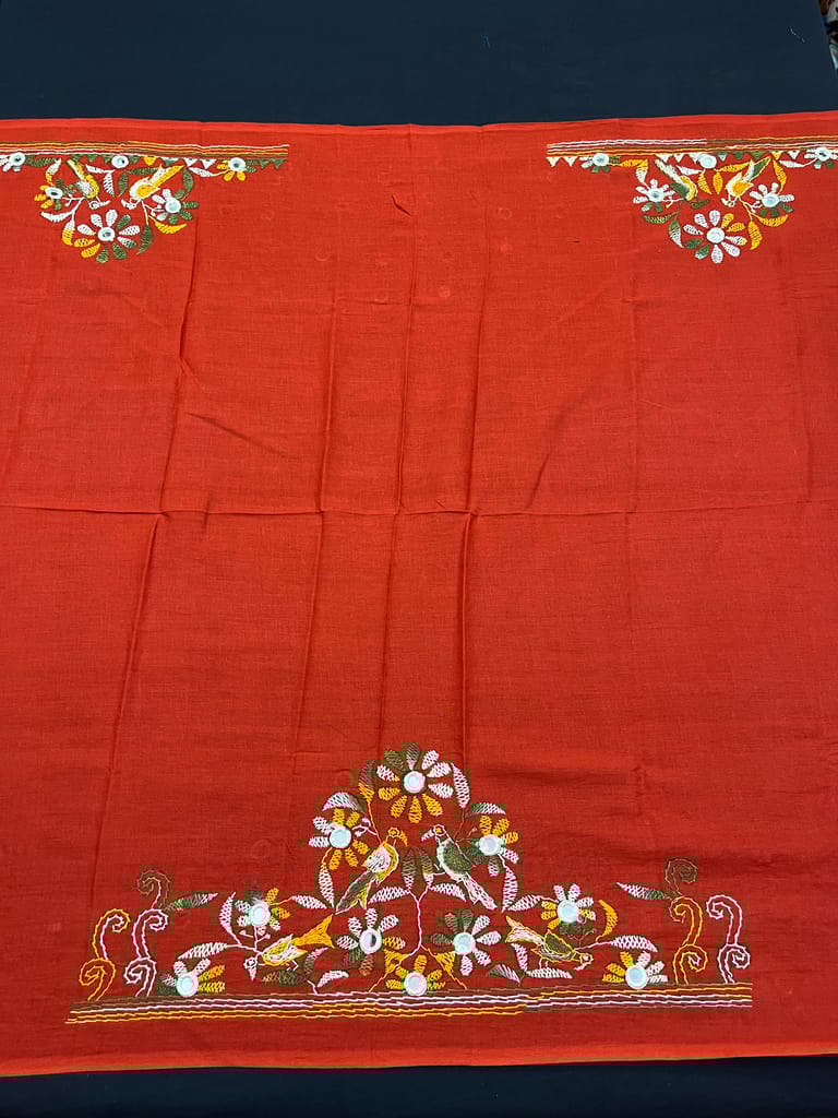 Kanthawork Blouse Piece is Purely Hand-Embroidered on the Back Neck and Sleeves Portion