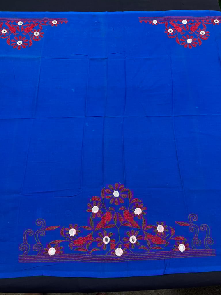 Kanthawork Blouse Piece is Purely Hand-Embroidered on the Back Neck and Sleeves Portion