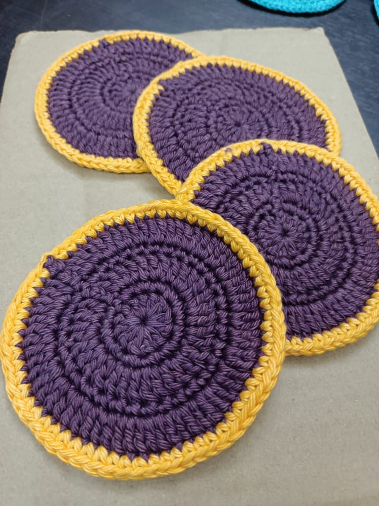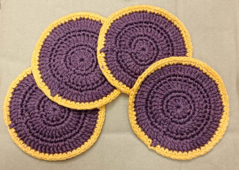 Give your home a Crafty Look with these Beautifully Handmade Crochet Coasters. Lighten up your Teapoys and Dining Tables with these Crochet Coasters. These Coasters come as a set of four-all the same colour.
