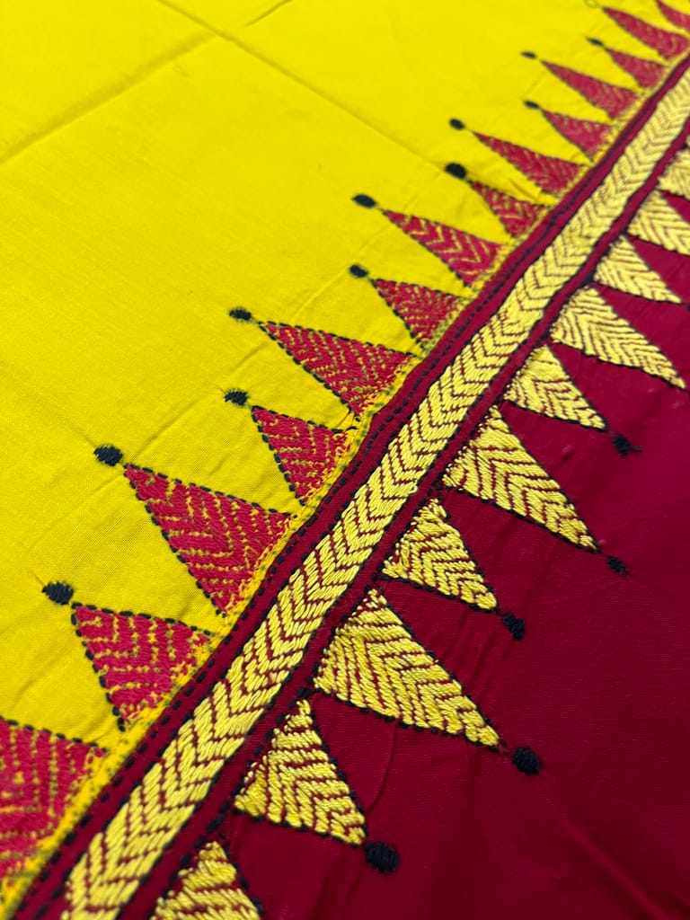 Kanthawork Blouse Piece is Purely Hand-Embroidered on the Back Neck and Sleeves Portion