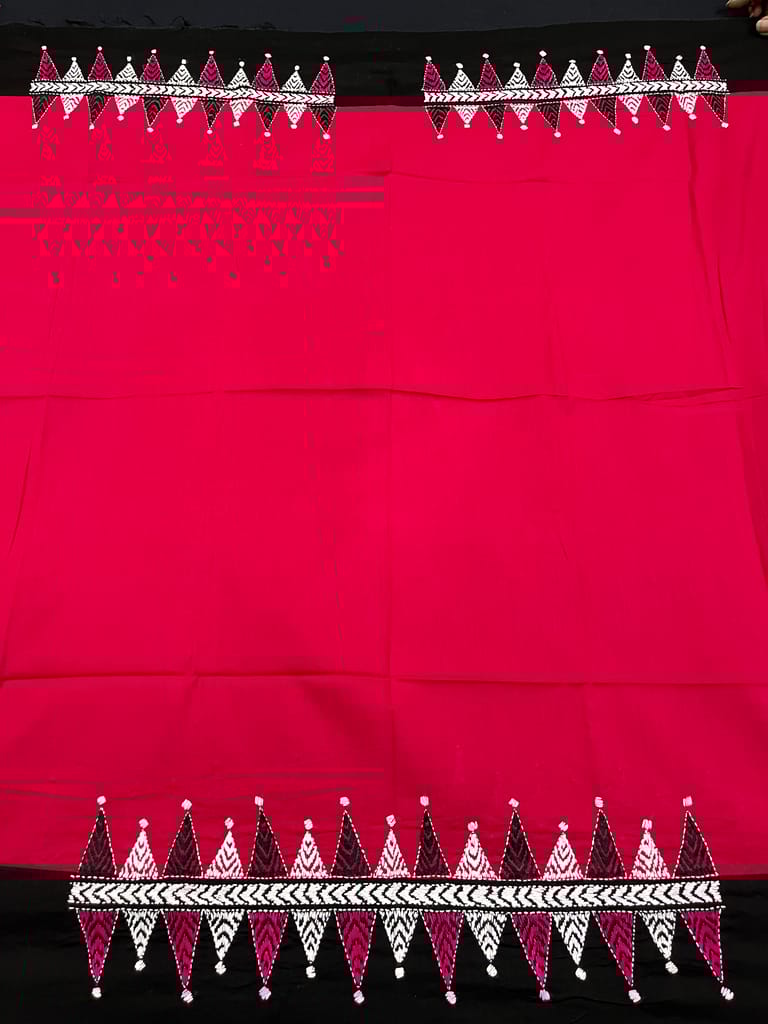 Kanthawork Blouse Piece is Purely Hand-Embroidered on the Back Neck and Sleeves Portion