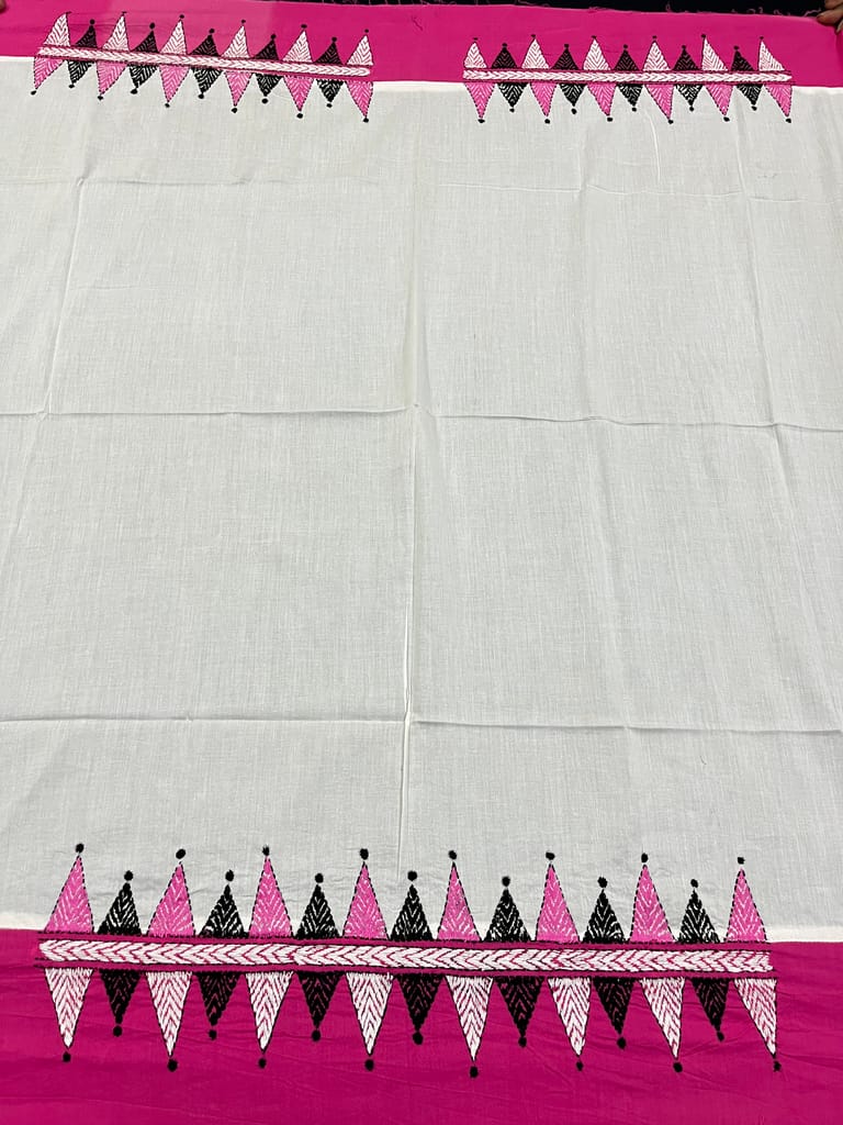 Kanthawork Blouse Piece is Purely Hand-Embroidered on the Back Neck and Sleeves Portion