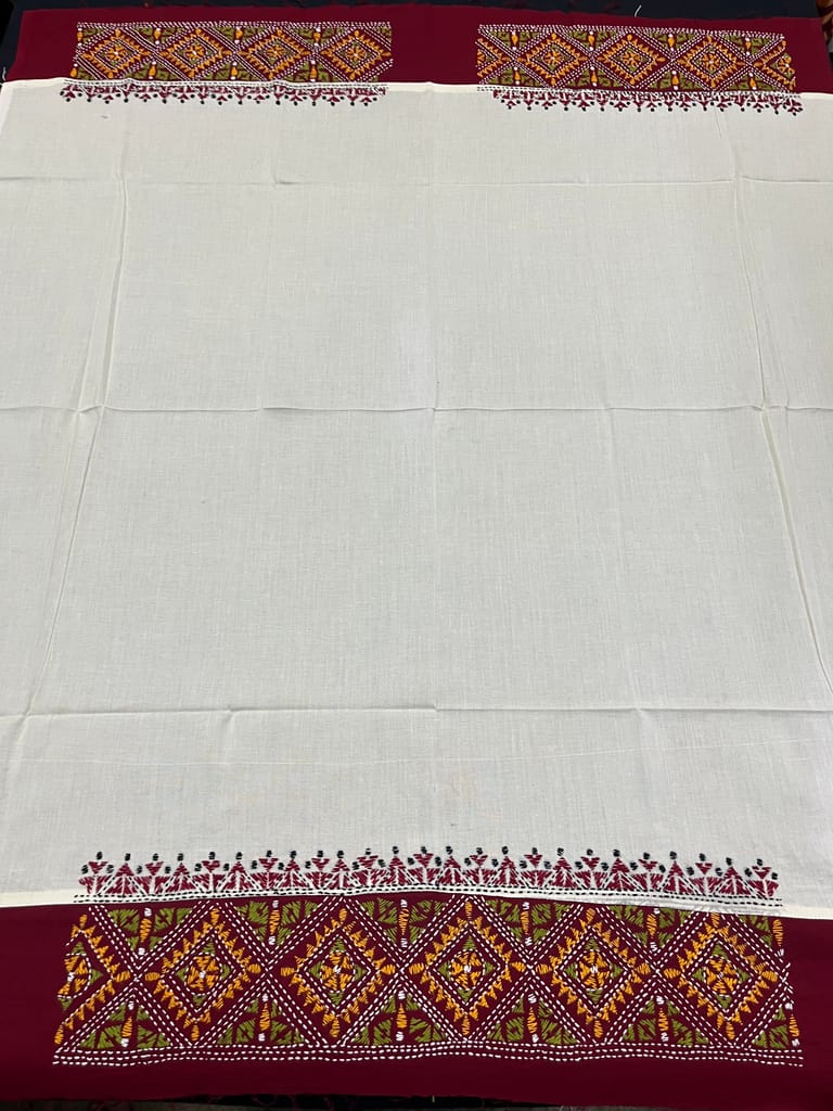 Kanthawork Blouse Piece is Purely Hand-Embroidered on the Back Neck and Sleeves Portion