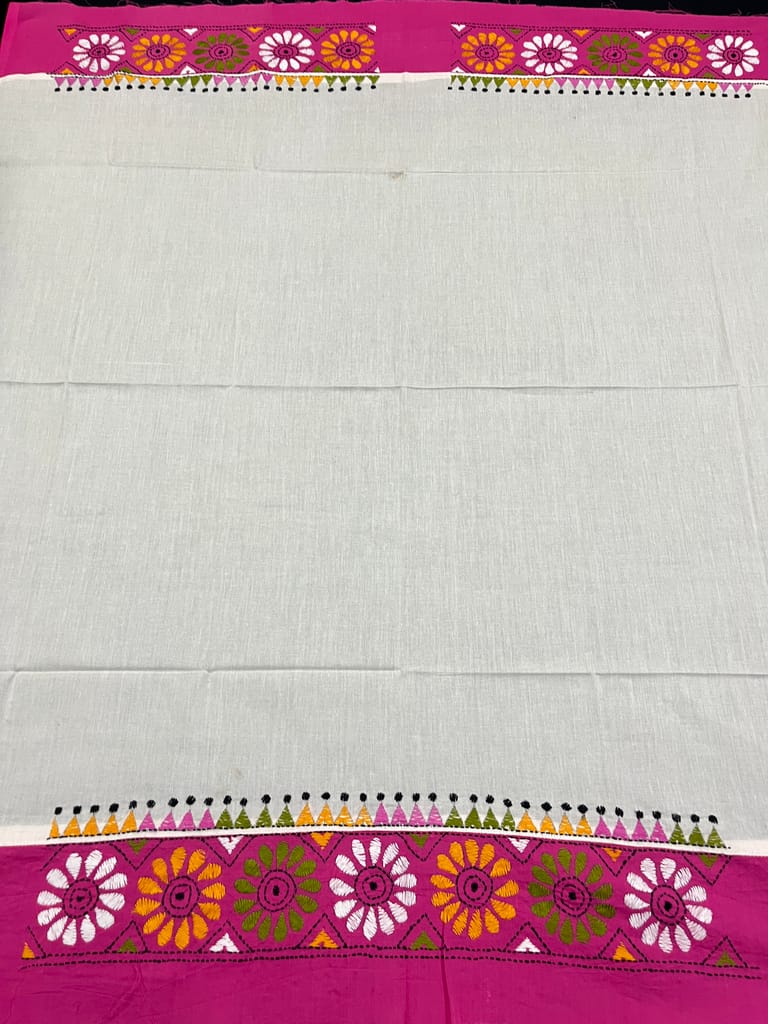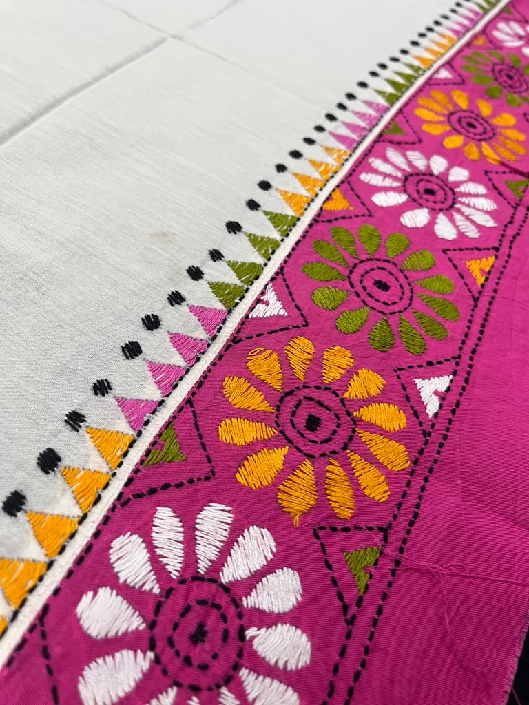 Kanthawork Blouse Piece is Purely Hand-Embroidered on the Back Neck and Sleeves Portion