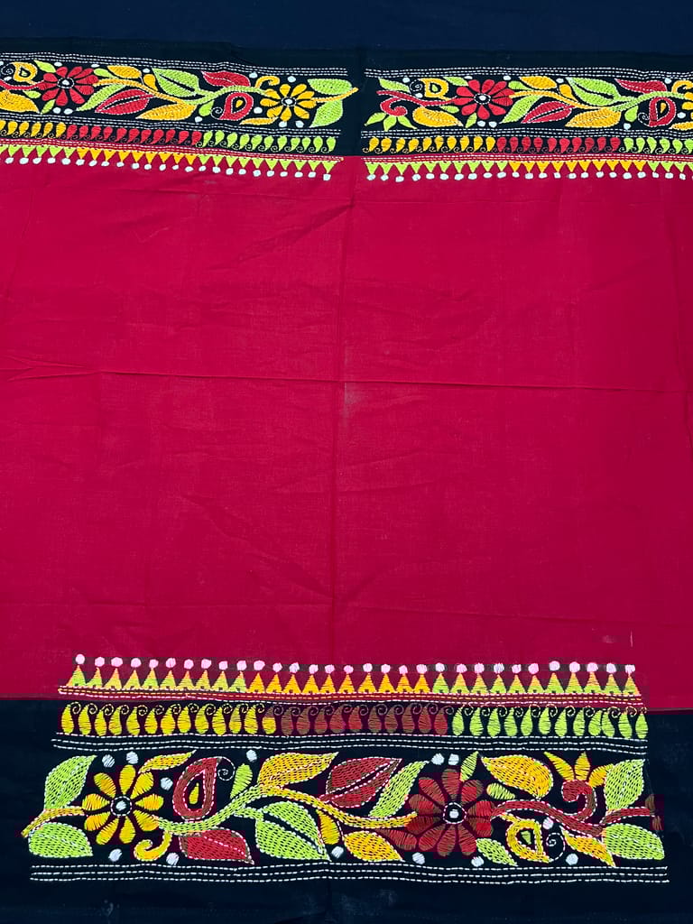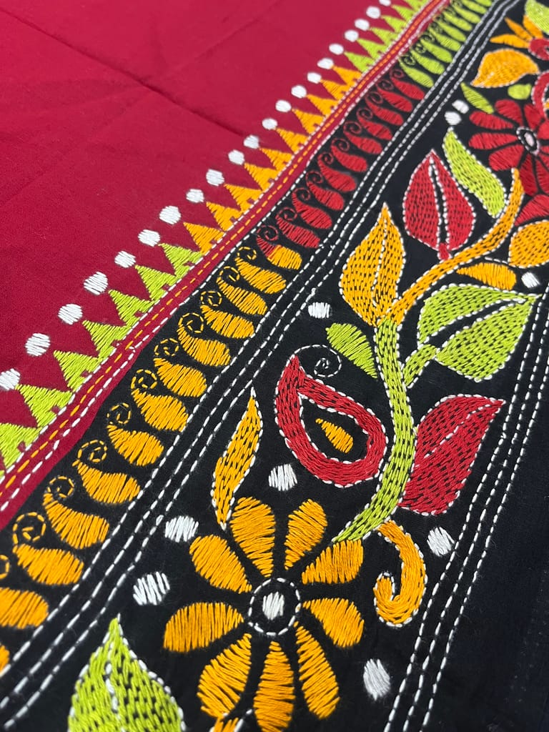 Kanthawork Blouse Piece is Purely Hand-Embroidered on the Back Neck and Sleeves Portion