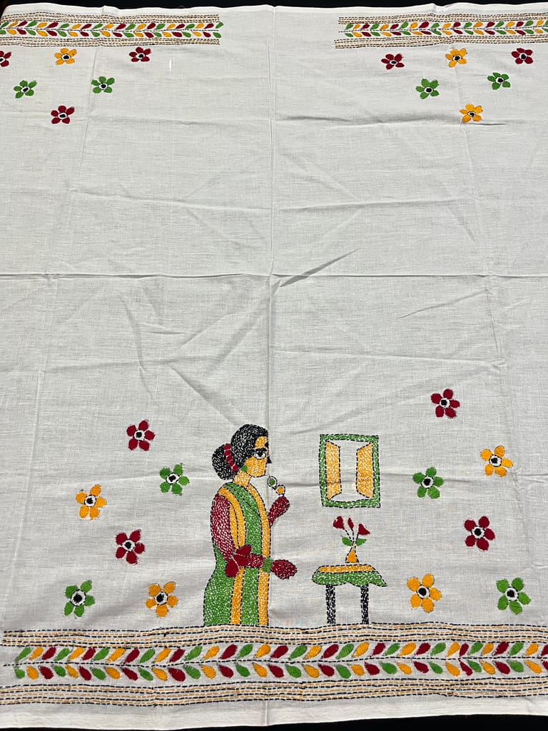 Kanthawork Blouse Piece is Intricately Handembroidered on the Back Neck and Sleeves Portion