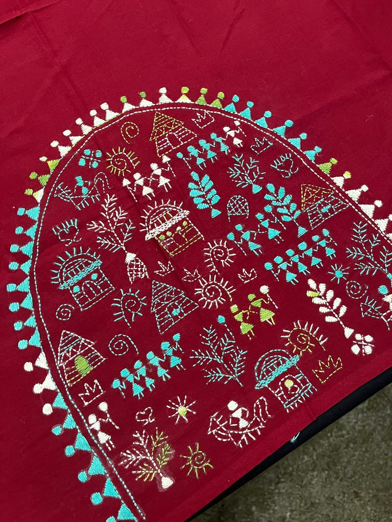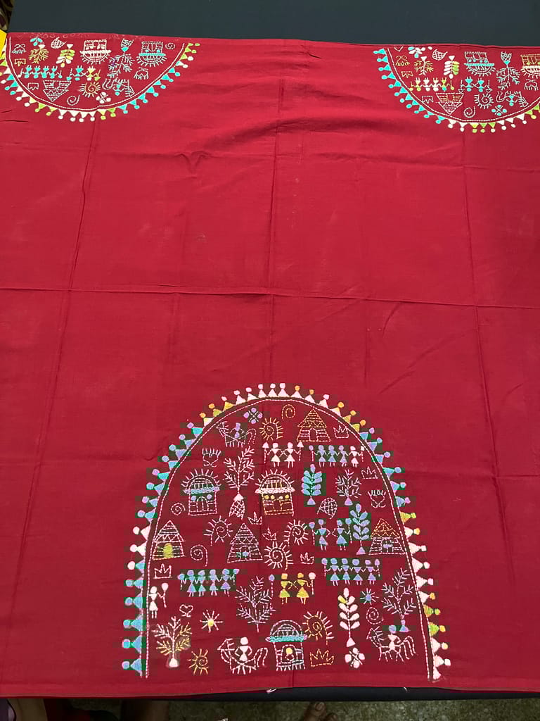 Kanthawork Blouse Piece is Intricately Handembroidered on the Back Neck and Sleeves Portion
