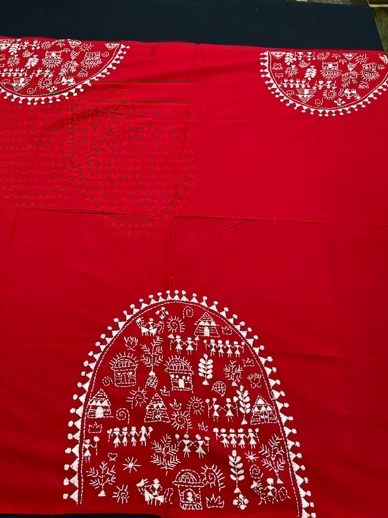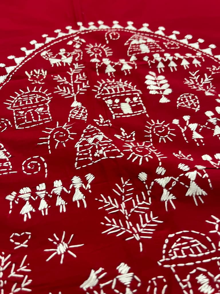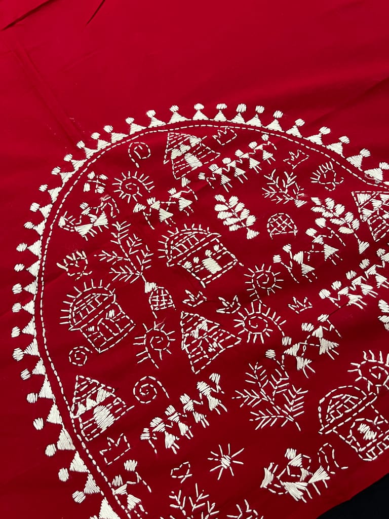 Kanthawork Blouse Piece is Intricately Handembroidered on the Back Neck and Sleeves Portion