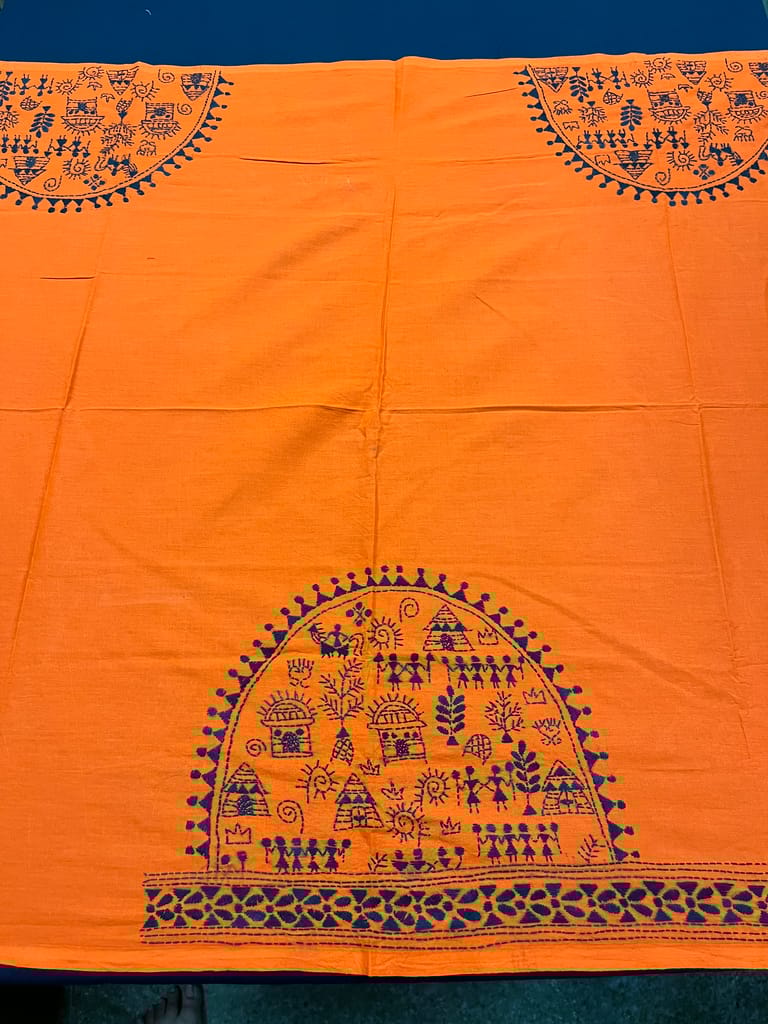 Kanthawork Blouse Piece is Intricately Handembroidered on the Back Neck and Sleeves Portion
