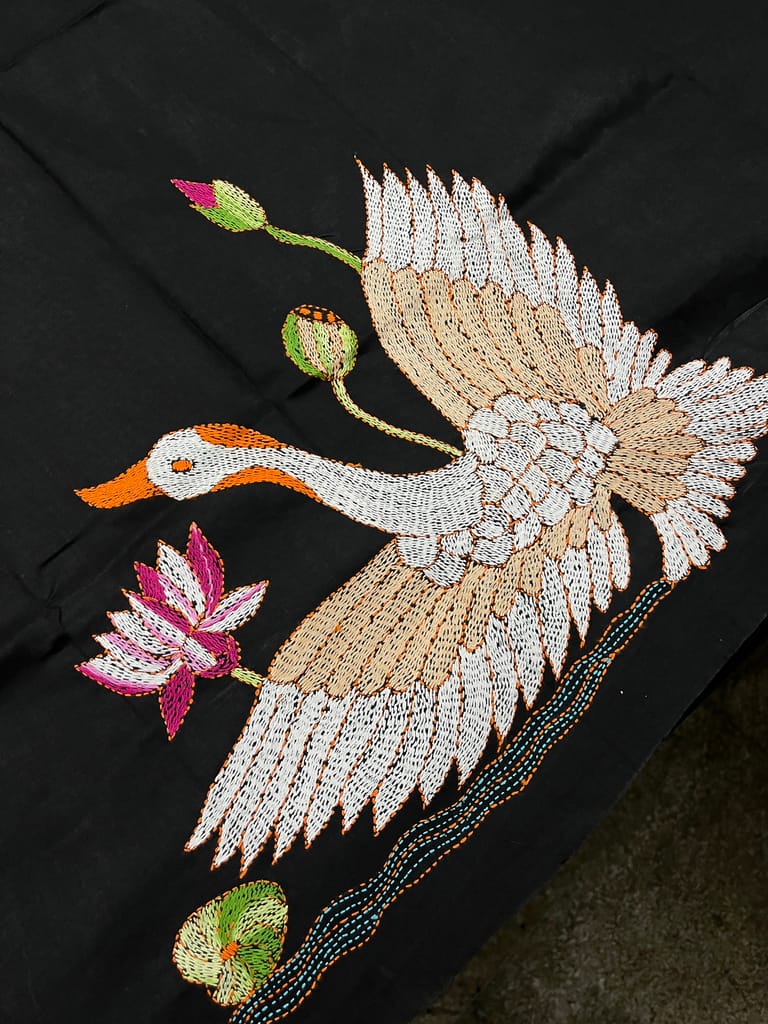 Kanthawork Blouse Piece is Intricately Handembroidered on the Back Neck and Sleeves Portion