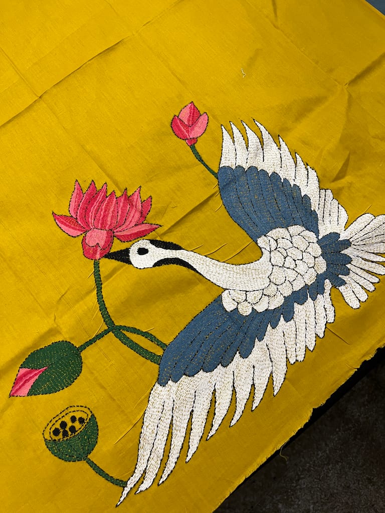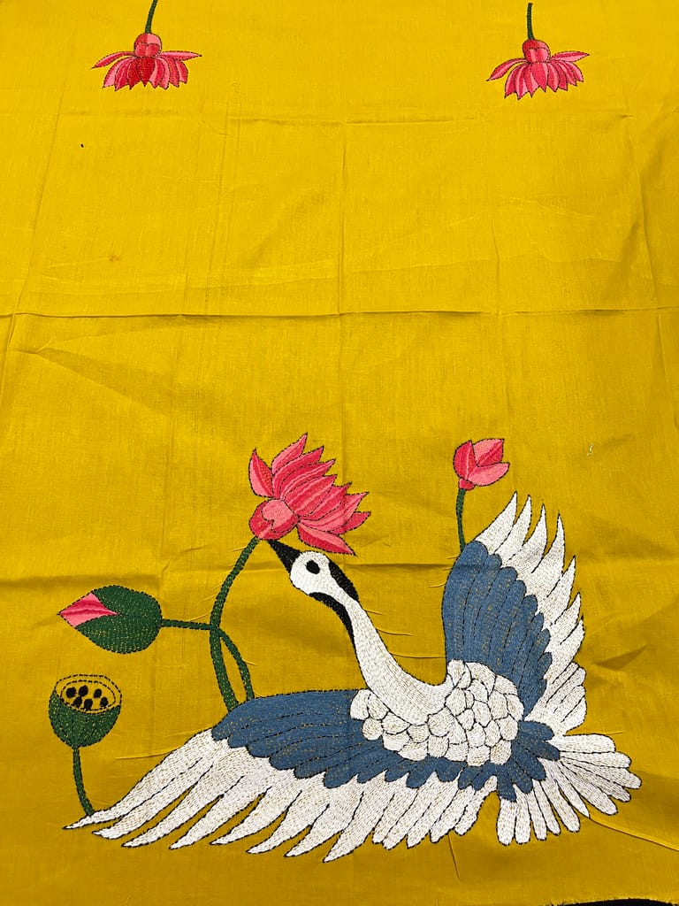 Kanthawork Blouse Piece is Intricately Handembroidered on the Back Neck and Sleeves Portion