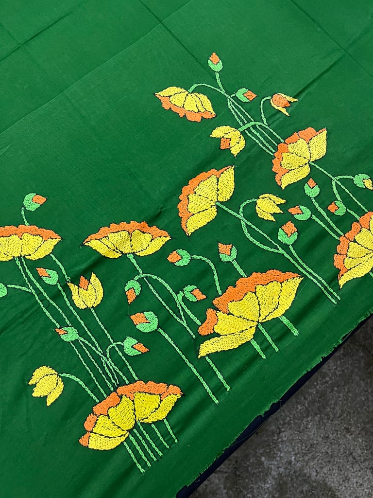 Kanthawork Blouse Piece is Intricately Handembroidered on the Back Neck and Sleeves Portion
