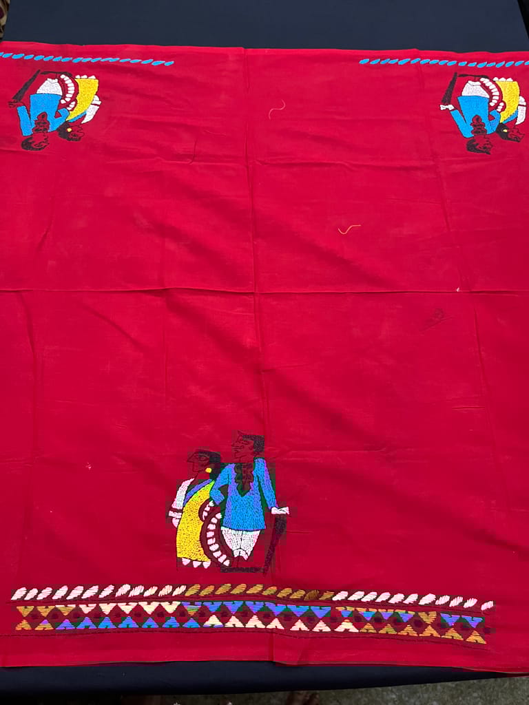 Kanthawork Blouse Piece is Intricately Handembroidered on the Back Neck and Sleeves Portion
