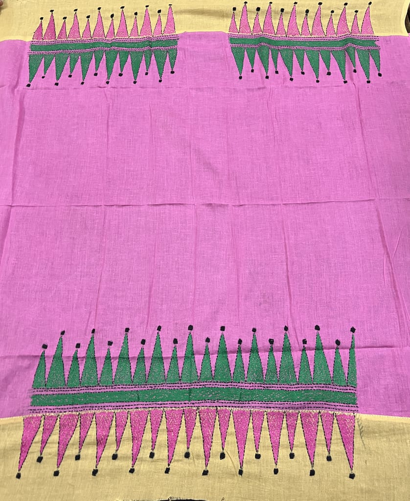 Kanthawork Blouse Piece is Purely Hand-Embroidered on the Back Neck and Sleeves Portion