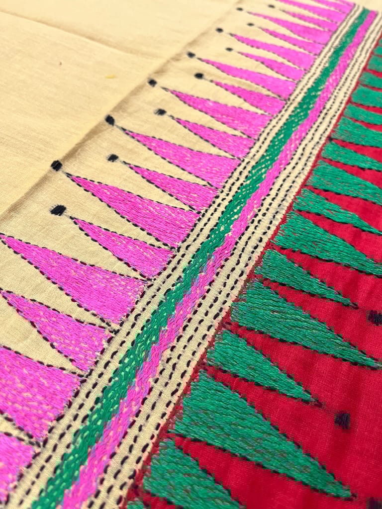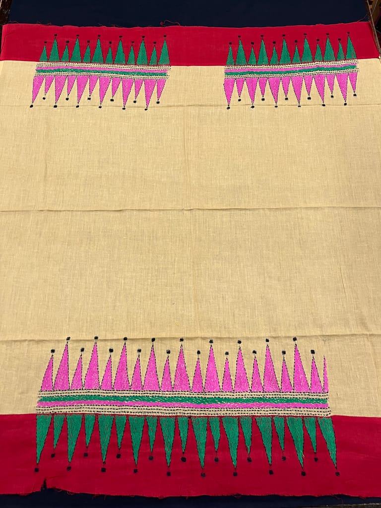 Kanthawork Blouse Piece is Purely Hand-Embroidered on the Back Neck and Sleeves Portion