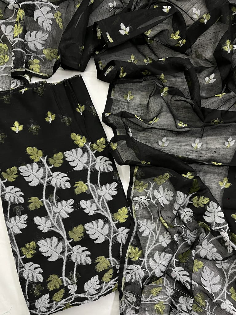 Look Beautiful in these Ethnic 2 Piece Unstitched Jamdani Suits!