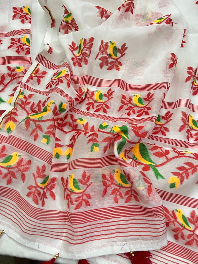 Dupatta : Pure Muslin Cotton with Jamdhani Design, Length : 2.50 Mtrs