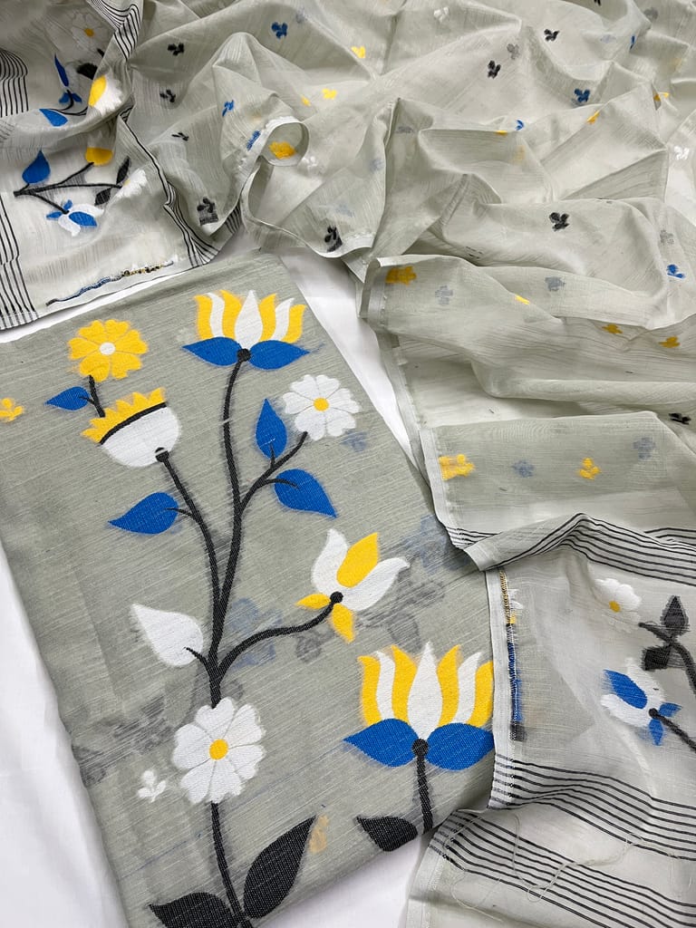 Top : Pure Muslin Cotton with Beautiful Jamdani Design, Length : 2.50 Mtrs