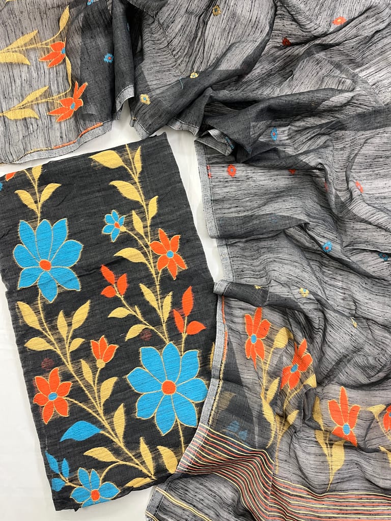 Look Beautiful in these Ethnic 2 Piece Unstitched Jamdani Suits!