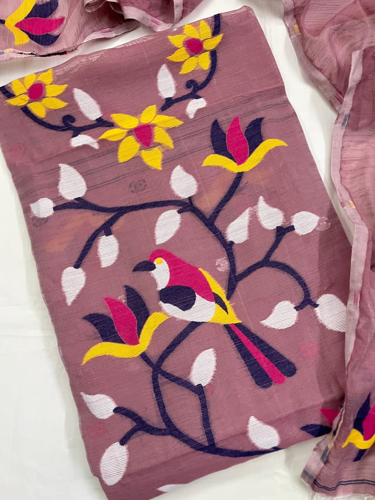 Top : Pure Muslin Cotton with Beautiful Jamdani Design, Length : 2.50 Mtrs