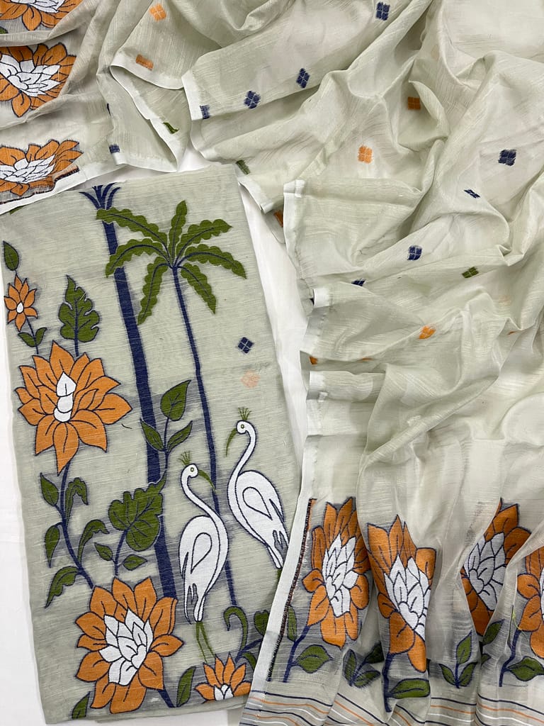 Top : Pure Muslin Cotton with Beautiful Jamdani Design, Length : 2.50 Mtrs