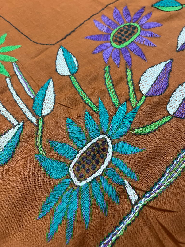 Kanthawork Blouse Piece is Purely Hand-Embroidered on the Back Neck and Sleeves Portion