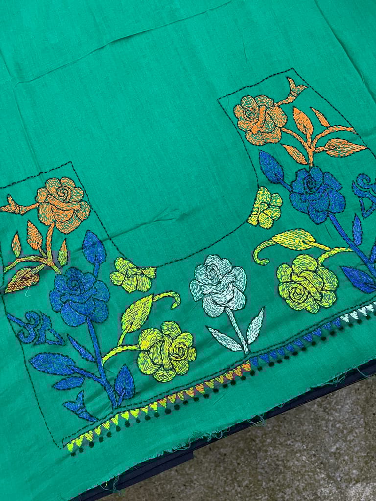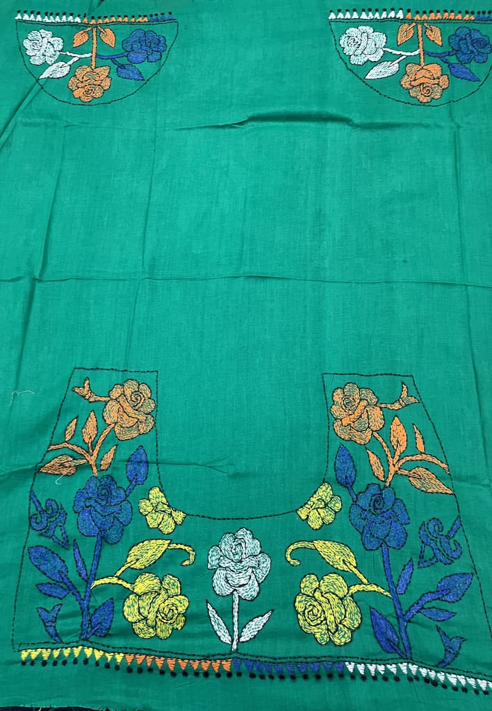 Kanthawork Blouse Piece is Intricately Handembroidered on the Back Neck area and Sleeves.