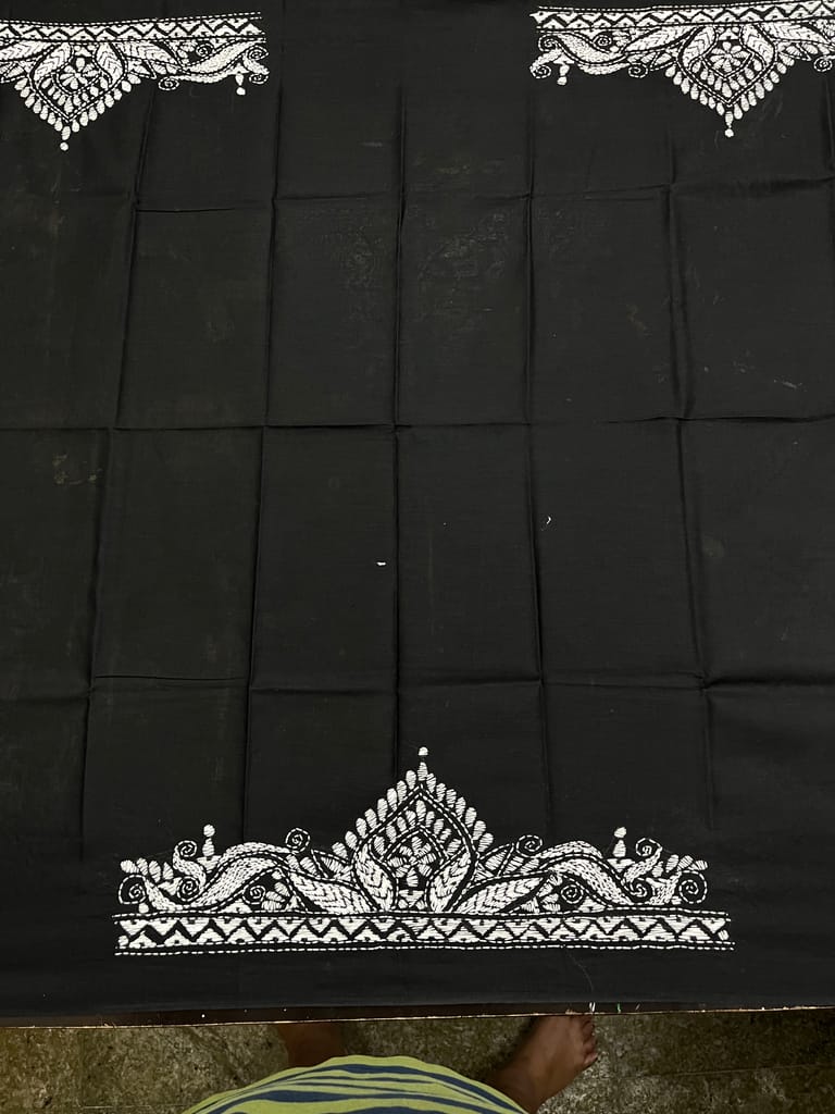 Kanthawork Blouse Piece is Purely Hand-Embroidered on the Back Neck and Sleeves Portion