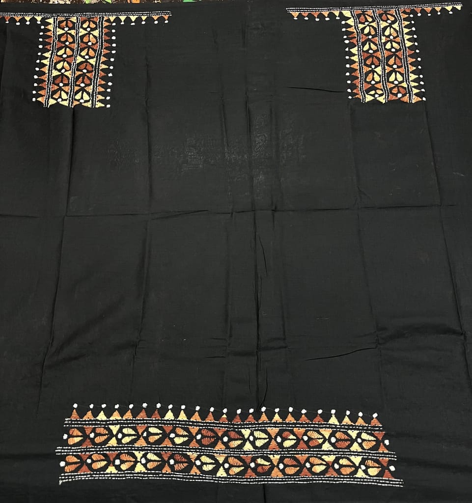 Kanthawork Blouse Piece is Purely Hand-Embroidered on the Back Neck and Sleeves Portion